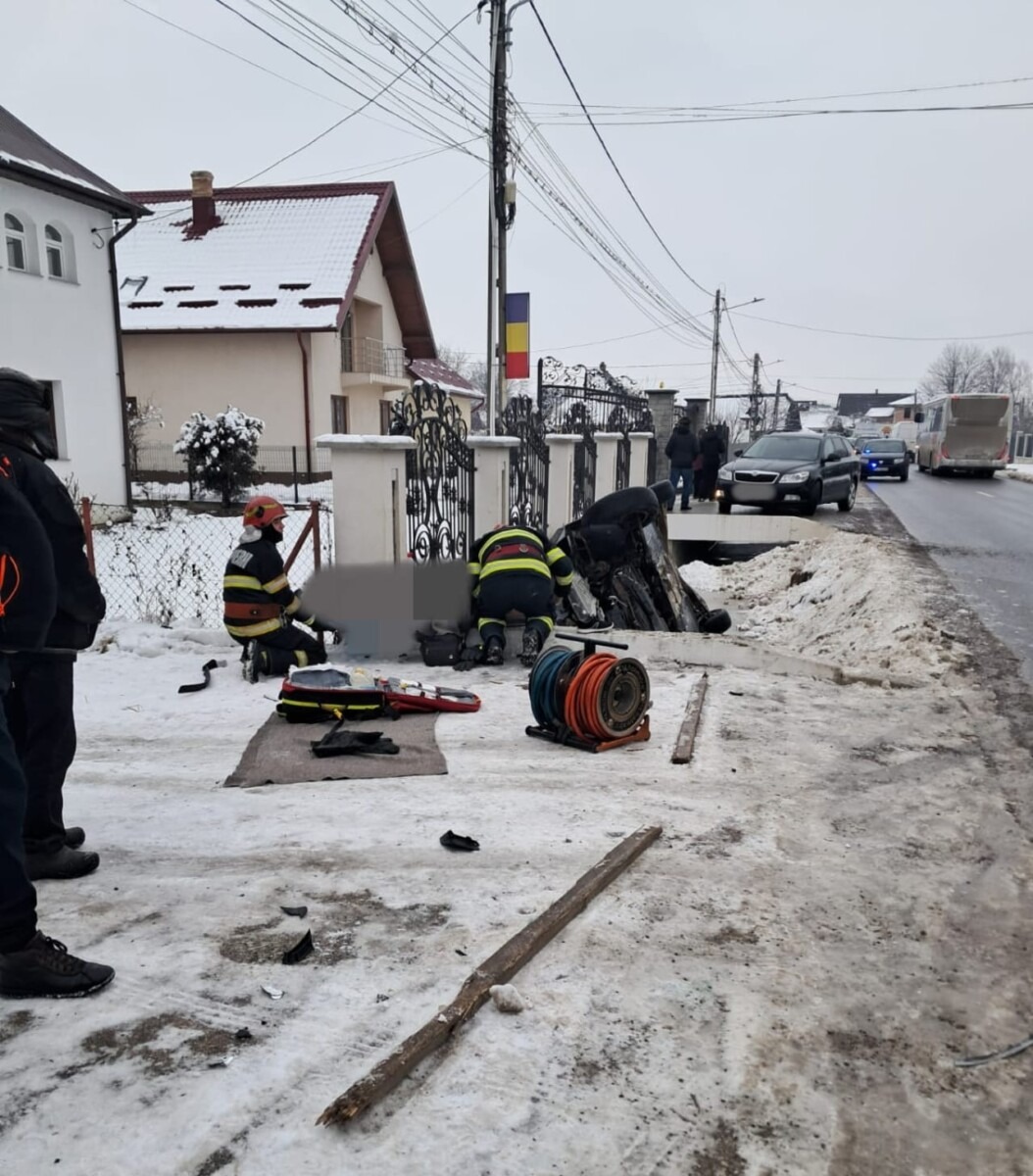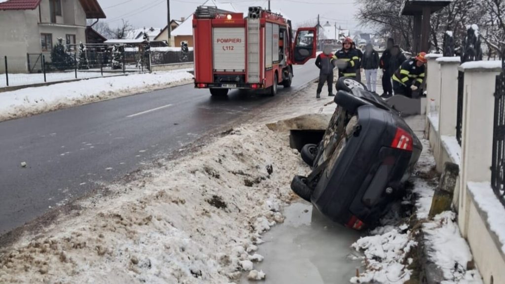 Un autoturism s-a răsturnat în afara părții carosabile, miercuri dimineața, pe raza localității Straja.