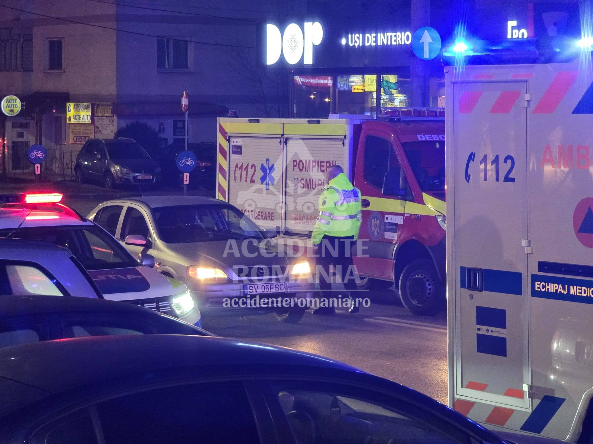 Un accident rutier s-a produs în această seară pe bulevardul George Enescu, în municipiul Suceava, unde două femei au fost lovite de un autoturism.